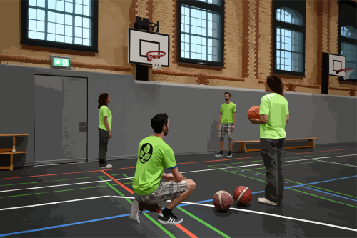 Blick in die Sporthalle, eine gruppe Studierender wird verschwommen in Bewegung dargestellt Werner Huthmacher Photography