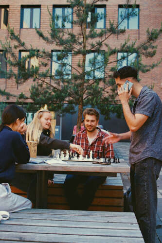 Natürlich kommt auch die Praxis nicht zu kurz: In Partien könnt ihr das neu Erlernte direkt anwenden und euch mit anderen Kursteilnehmer*innen messen. Um auf unseren gewünschten „Bräunungsgrad“ zu kommen, haben wir bei schönem Wetter die Möglichkeit draußen zu spielen.